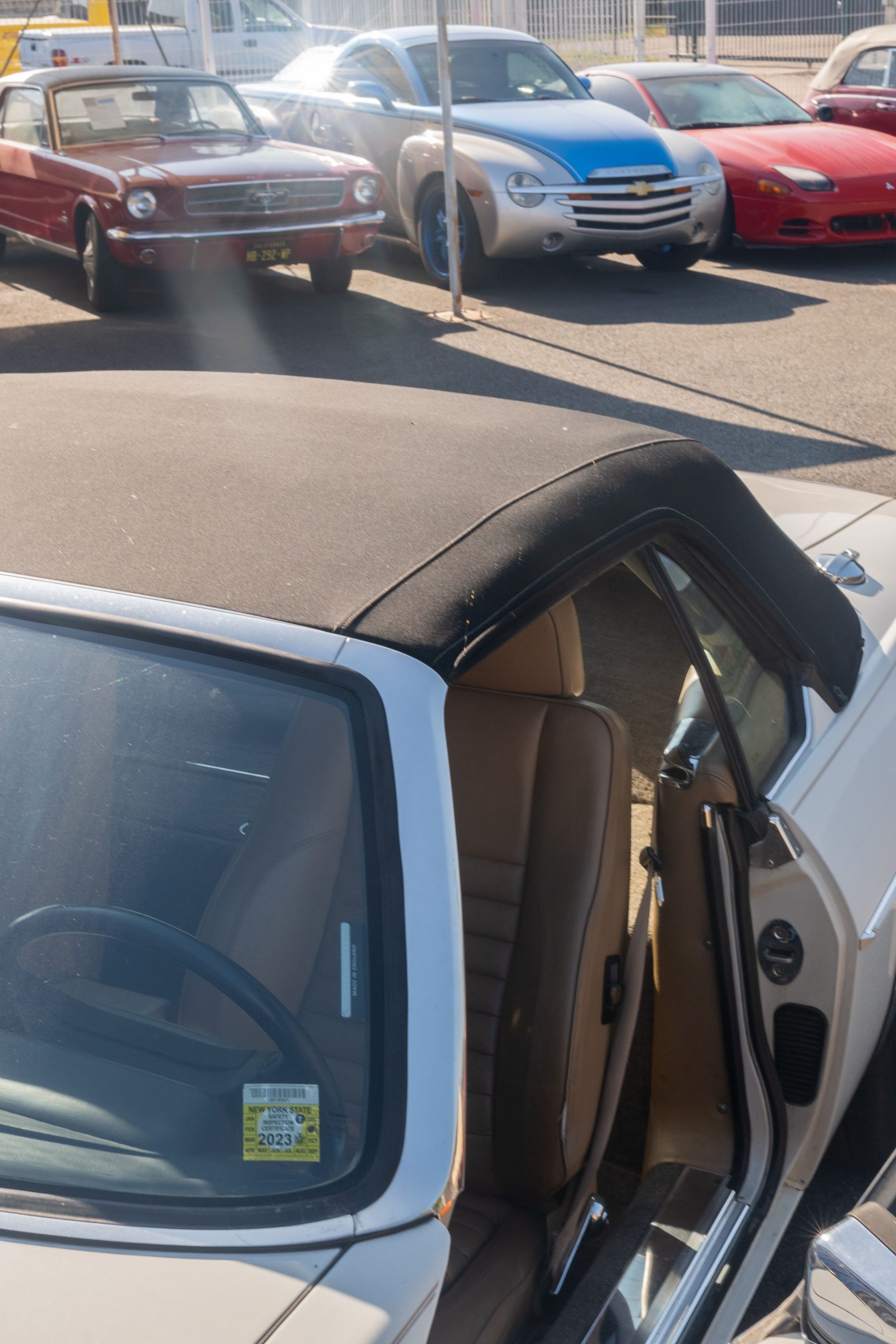 Affichant 39 030 miles (non certifiés), ce cabriolet est en excellent état d’origine. La carrosserie et la structure inférieure sont saines, sans trace de rouille ni défaut structurel. L’intérieur en cuir beige est impeccable, sans déchirures, et les sièges électriques et chauffants offrent un confort optimal pour le conducteur et le passager.